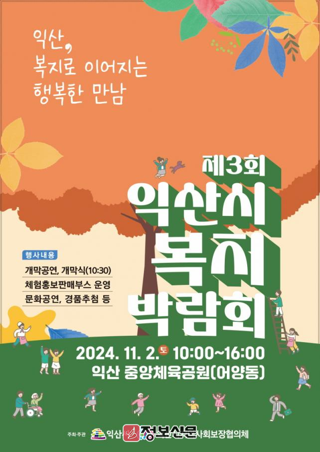 익산시는 오는 11월 2일 중앙체육공원에서 '익산, 복지로 이어지는 행복한 만남'을 주제로 '제3회 익산시 복지박람회'를 개최한다.