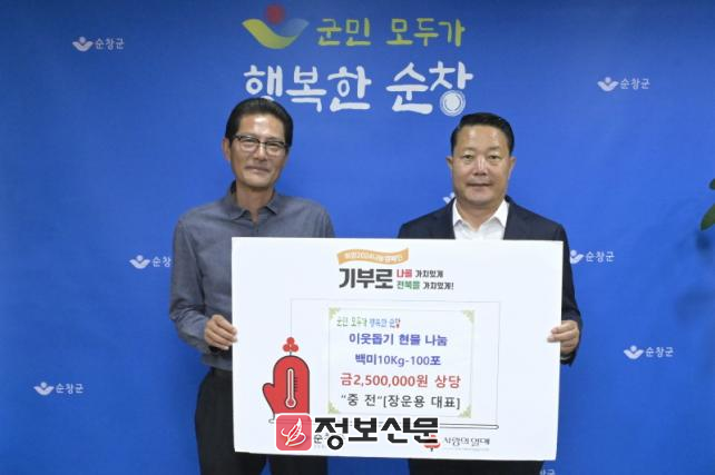 ![]() 중전 장운용 대표, 순창군에 250만원 상당 백미 100포 기탁 |