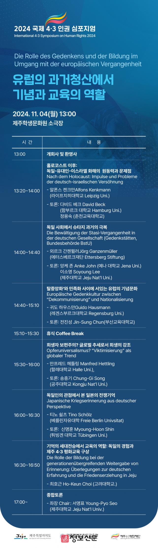 제주특별자치도(도지사 오영훈)와 제주특별자치도교육청(교육감 김광수)이 주최하고 제주4․3평화재단이 주관하는 이번 행사는 제2차 세계대전이 끝난 후 독일의 과거사 교육과 기념 문화에 대하여 독일을 대표하는 과거사 연구 및 교육기관인 에터스베르크재단과 라이프니치, 함부르크, 베를린자유대 등 주요 대학 연구자들이 참여한다.