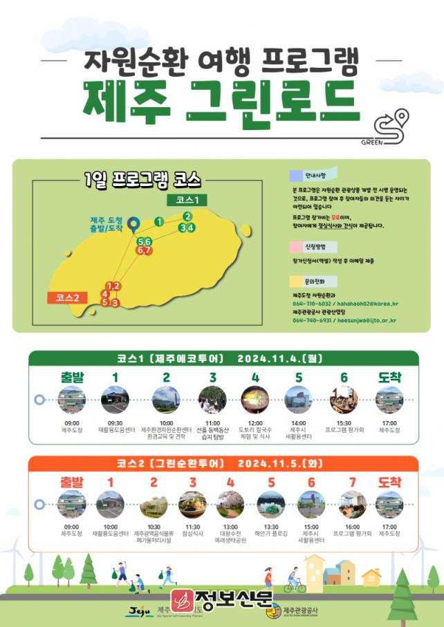 이번 프로그램은 두 가지 코스로 진행된다. 첫날인 11월 4일에는 동쪽을 탐방하는‘제주에코투어’가, 둘째 날인 11월 5일에는 남쪽 지역을 탐방하는 ‘그린순환투어’가 운영된다.