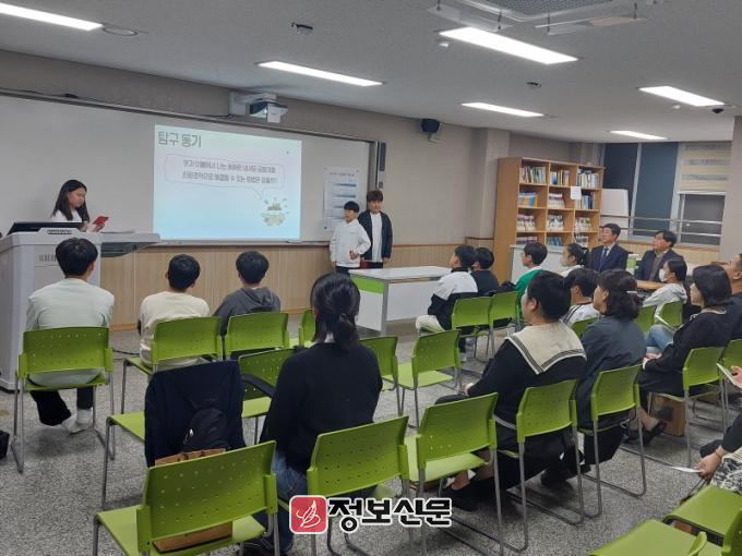 이날 영재교육원 자연과학영역에 재학 중인 중등(중학교 1학년) 4팀, 28~29일에는 초등(초등학교 5·6학년) 24팀이 참여하여 1년간의 성과를 공유했다.