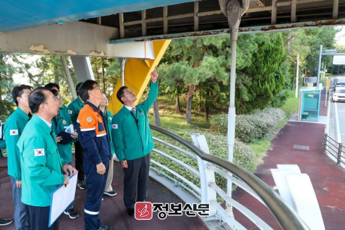 정인화 시장은 민원인과 함께 육교 위아래를 살피며 바닥판, 아치부, 난간 등 구조물의 상태를 면밀하게 점검한 후, 시 재정 여건을 고려해 도장 방법, 경관조명, 투입예산 등 재도장 및 야간경관 개선계획을 종합적으로 검토 보고할 것을 관계 부서에 지시했다.