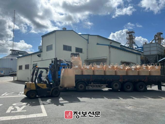 ![]() 검사를 마친 벼를 보관창고로 이송하기 위해 상차하는 모습 |