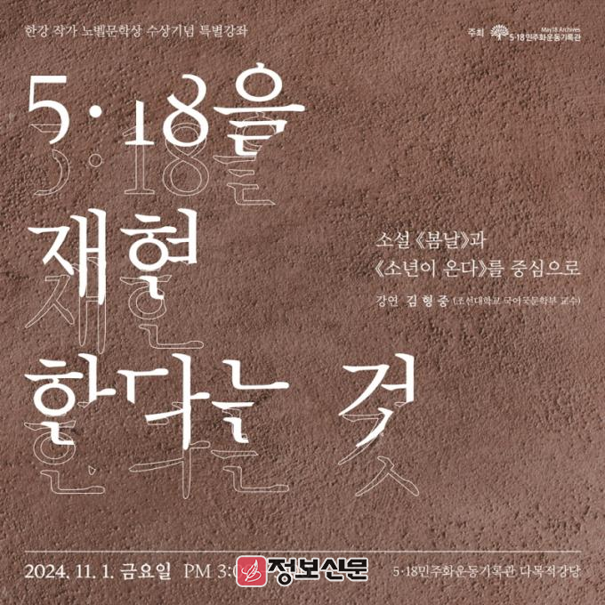 ![]() 광주5‧18기록관, 한강 작가 노벨상 기념 특별강연 개최 |