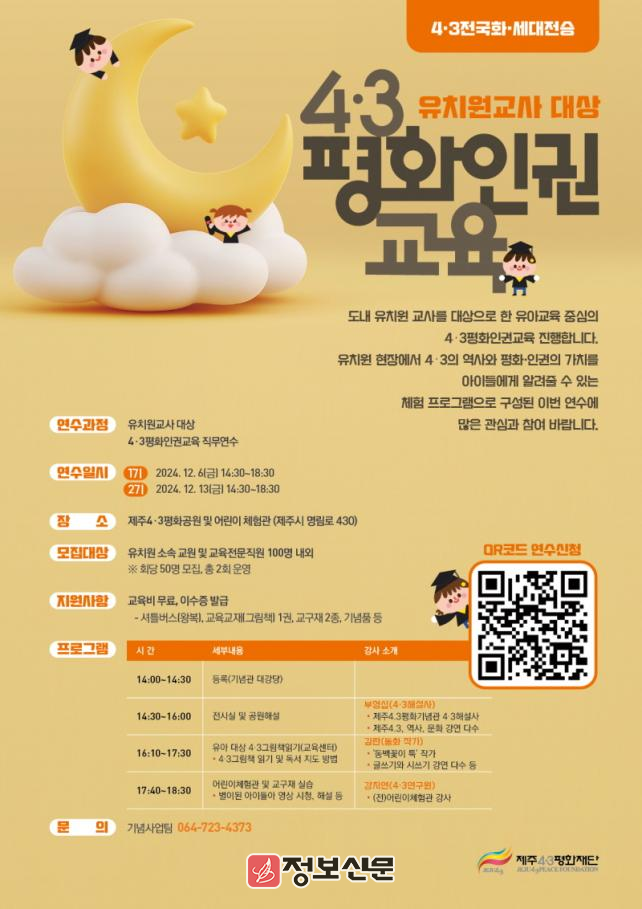 ![]() 4.3평화재단, 유치원교사 대상 4․3평화인권교육 첫 개설 |