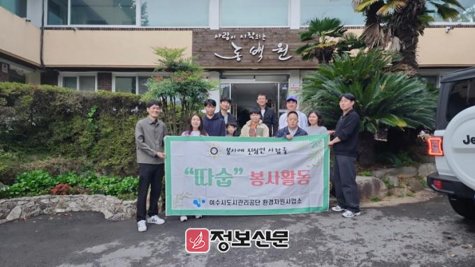 여수시도시관리공단 환경자원사업소 「따숩」 봉사단은 시설물의 하반기 정기유지 보수기간에 사업소 인근 마을 집 청소와 환경정화활동을 하는 등 사회공헌활동을 추진해 왔으며, 지방공기업으로서 사회적 가치 실현을 위해 지속적으로 노력하고 있다.