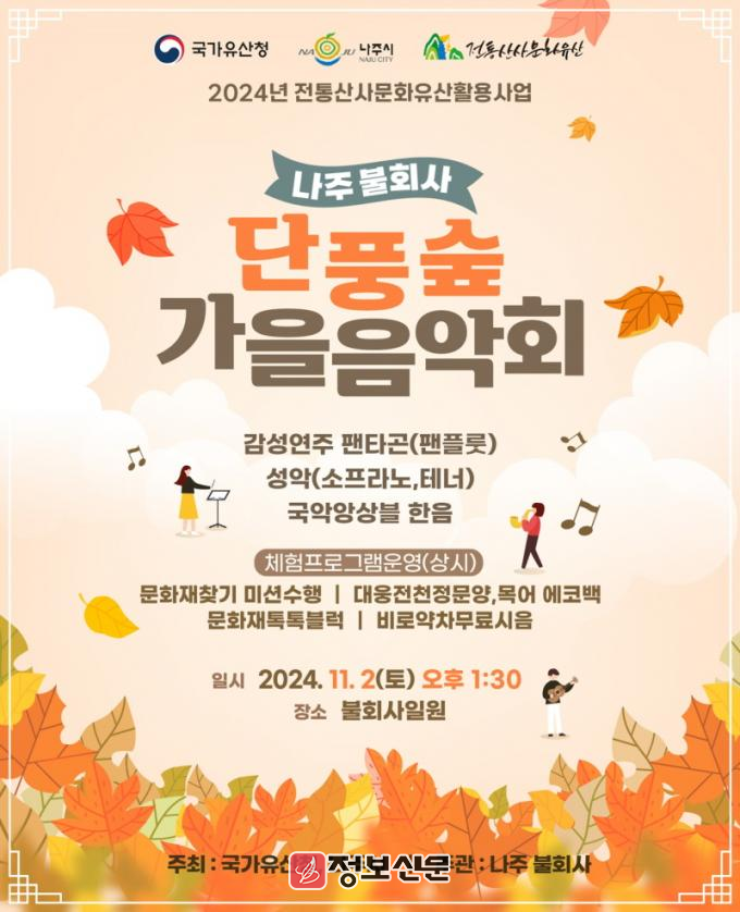![]() 나주시 불회사, 단풍숲 가을 음악회 개최 |