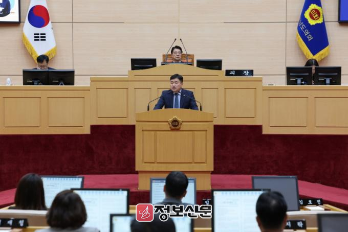 ![]() 11월 1일 모정환 도의원이 제386회 제2차 정례회 제1차 본회의에서 5분 자유발언을 하고 있다. |