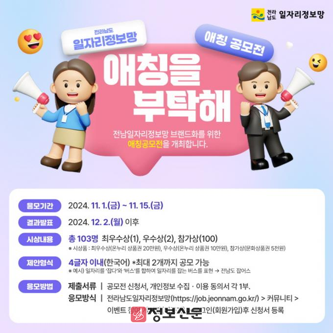 ![]() 전라남도,일자리 정보망 애칭 공모전 진행 |