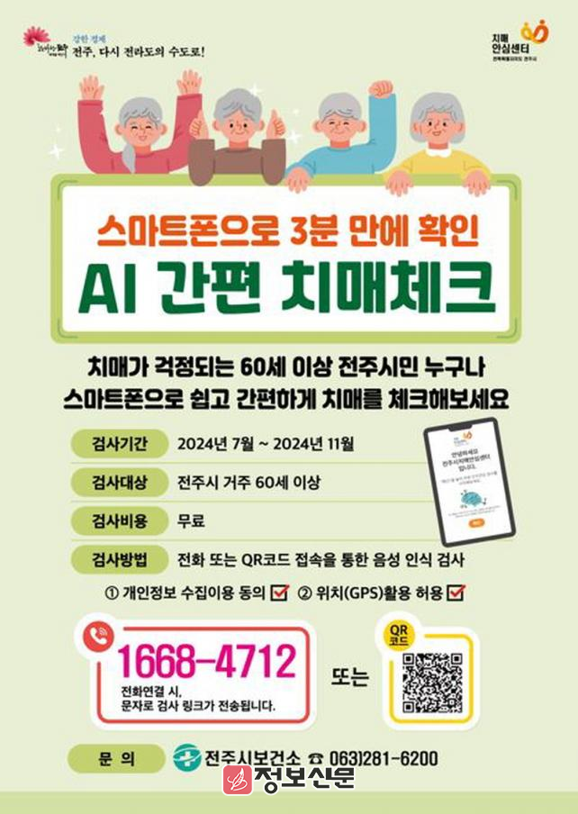 ![]() 전주시, 인공지능(AI)간편치매체크서비스 11월까지 검사가능 |