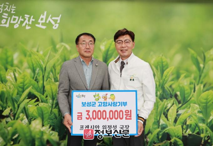 ![]() 위정성 프레시안 광주전남본부 국장, 보성군에 고향사랑기부금 300만 원 기탁_위정성 프레시안 광주전남본부 국장, 보성군에 고향사랑기부금 300만 원 기탁했다(좌 위정성 프레시안 광주전남본부 국장, 우 김철우 보성군수)