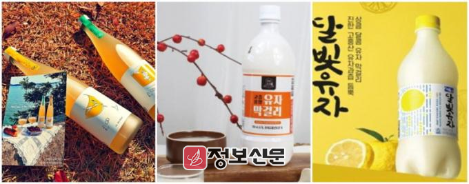 ![]() 고흥군, 2024 남도 주류 페스타 참가 (왼쪽부터 녹동 양조장 어떤하루의 고흥 유자주, 풍양청정영농조합의 유자 약주, 서울장수막걸리의 달빛 유자주) |
