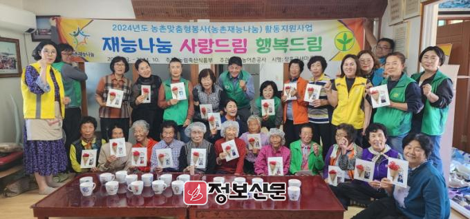 ‘2024 재능드림 사랑드림 행복드림’이라는 주제로 실시된 재능 나눔 봉사는 자원봉사자의 인적, 물적 자원으로 농촌 지역 어르신들의 삶의 질을 향상 시키고 농촌공동체 활성화, 국토균형발전에 기여하기 위하여 실시됐다.