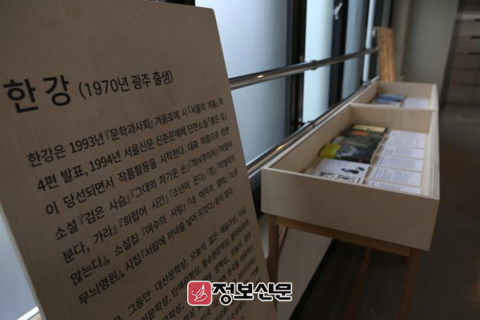 책과 함께 설명자료와 한강 작가 관련 스크랩북도 전시돼 관람객의 이해를 높였다. 도서는 전시 기간 중 4층 도서자료실에서 읽을 수 있다.