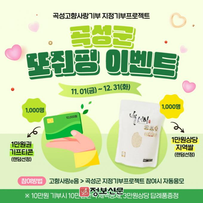 ![]() 곡성군, 고향사랑기부제 또줘핑~~이벤트 진행 |