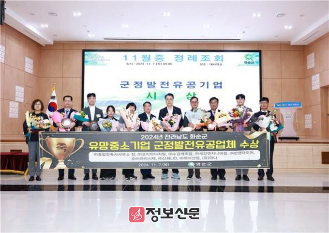 화순군은 산업현장에서 지역 경제 활성화와 일자리 창출을 통해 군정 발전에 앞장서 온 관내 중소기업 9개 사를 대상으로 군정 발전 유공 기업 표창을 수여했다.