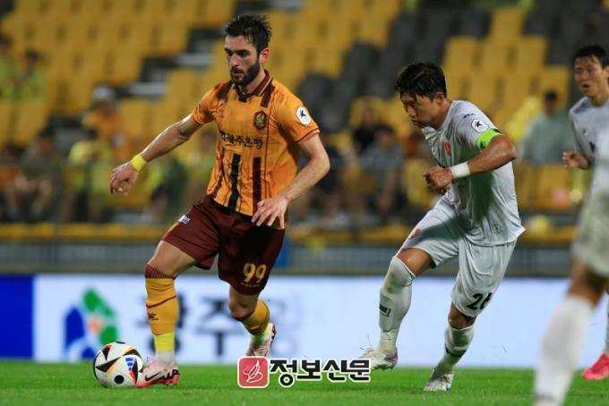 현재 리그 8위 광주(승점 45점)는 지난 대전과의 경기에서 0대0 무승부를 거두며 잔류 안정권에 한 발짝 다가섰다. 하지만 자력으로 잔류를 확정 짓기 위해선 승점 3점이 필요하다. 비록 주중 고베 원정에서 패배를 당하며 ACLE 4연승은 좌절됐지만, 제주전 승리를 통해 리그 잔류를 확정 짓겠다는 각오다.