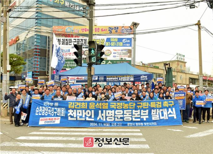 한편, 지역위원회는 11월 28일까지 광양시 중마동 호반아파트 사거리에 천막 본부를 운영하며, 각 시군별로 이동식 서명대 운영 등을 통해 천만인 서명운동을 지속해 펼쳐나갈 예정이다.