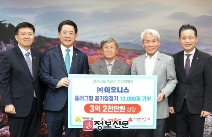 김영록 전남도지사는 기탁식에서 “독거 어르신을 위한 따뜻한 마음을 담아 플러그형 공기청정기를 기부한 이오니스에 감사하다”며 “도민 안전 보장과 함께 지역 사회공헌 확대에 힘쓰겠다”고 밝혔다.