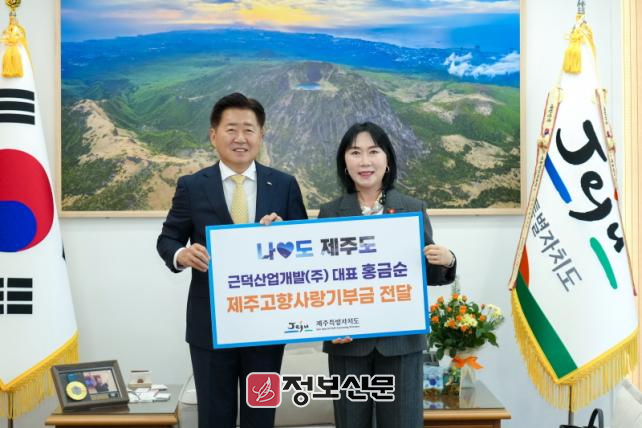 ![]() 홍금순 근덕산업개발 대표, ‘나도♥제주도’제주고향사랑기부 동참 |