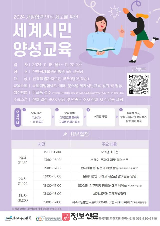 ![]() 전북국제협력진흥원, 2024 개발협력 인식제고 위한 세계시민 양성사업 수강생 모집 |