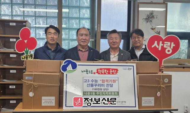 ![]() 군산시 나운1동 지역사회보장협의체, 고3년 수험생 합격기원 선물 전달 |