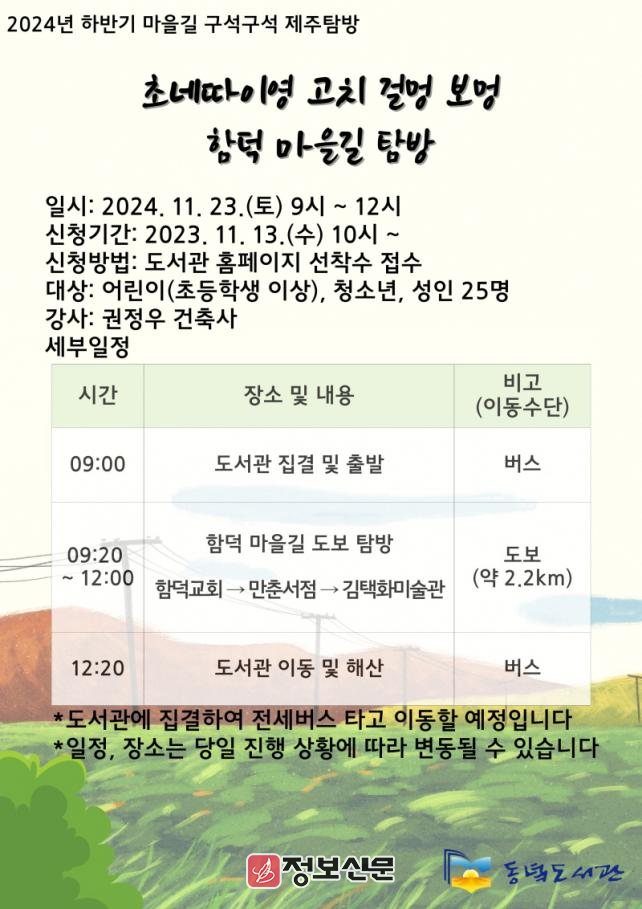 ![]() 동녘도서관, 마을길 구석구석 제주탐방 참가자 모집 |