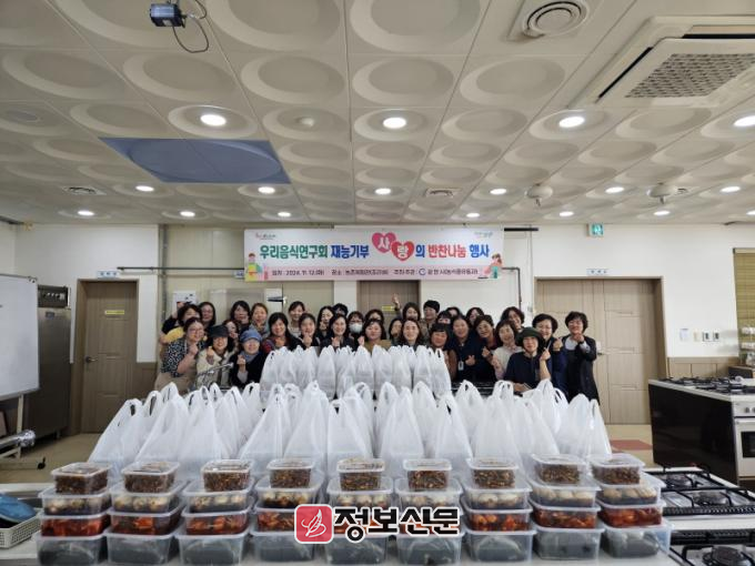 김정례 우리음식연구회 회장은 “회원들의 작은 정성을 모아 만든 반찬을 어르신들께서 맛있게 드셨으면 한다, 앞으로도 이러한 재능기부 활동을 통해 따뜻한 마음을 나누는 이웃사랑을 지속적으로 실천하겠다”라고 말했다.