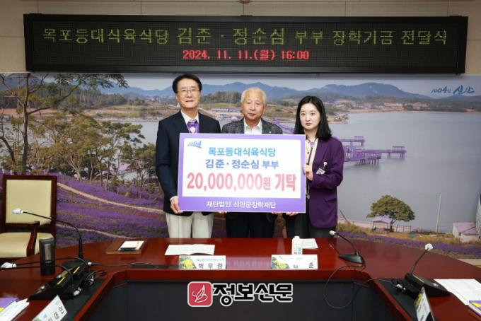 ![]() 목포 등대식육식당 대표 김준.정순심 부부, (재)신안군장학재단에 장학기금 기탁 |