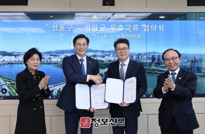 정원오 성동구청장도 “성동구와 영암군 모두 주민의 삶의 질을 높이고 미래 행정을 선도하려는 열망이 닮아 있다. 이번 우호교류를 통해 서로의 고민을 나누고 협력해 지역문제를 함께 해결하고, 지속 가능한 발전의 기반을 구축하자”라고 화답했다.