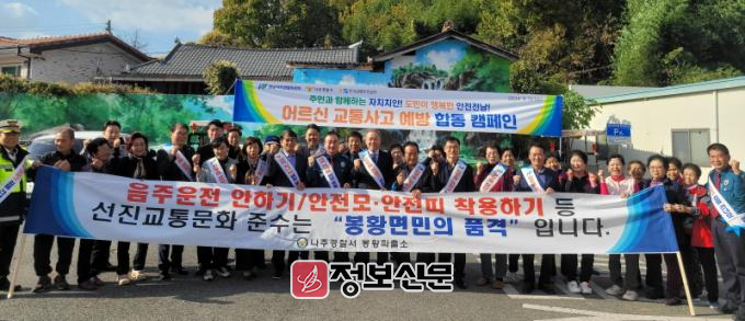 캠페인은 지난달 17일 두 기관 간 교통사고 줄이기 업무협약에 따른 것으로, 나주 봉황면 일대에서 전남자치경찰위원회, 한국도로교통안전공단 광주전남본부, 나주경찰서, 마을주민 50여 명이 참여한 가운데 진행됐다.