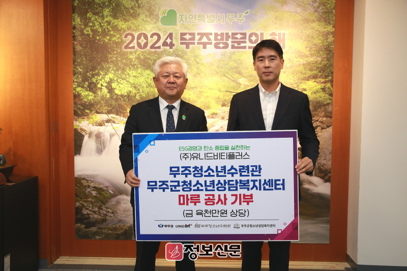 무주군에 따르면 지난 9월 ㈜유니드비티플러스에서 무주청소년수련관(재단법인 쌍백합청소년육성회) 서양 악기실과 댄스연습실 무주군청소년상담복지센터(전주기전대학 산학협력단)의 사무실과 각 상담실 등 417㎡ 규모에 국내산 소나무 재질의 고강도 올코어 강마루(올고다 마루)를 시공·완료했다.