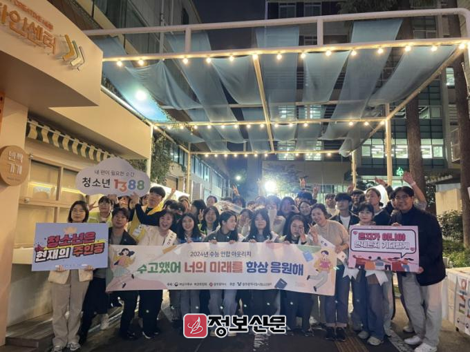 이날 캠페인은 수능시험이 끝난 후 수험생 등 청소년들의 학교 밖 활동이 증가함에 따라 일탈・비행에 대한 노출이 높아져 이를 예방하고 유해환경으로부터 청소년을 보호하기 위해 진행했다.