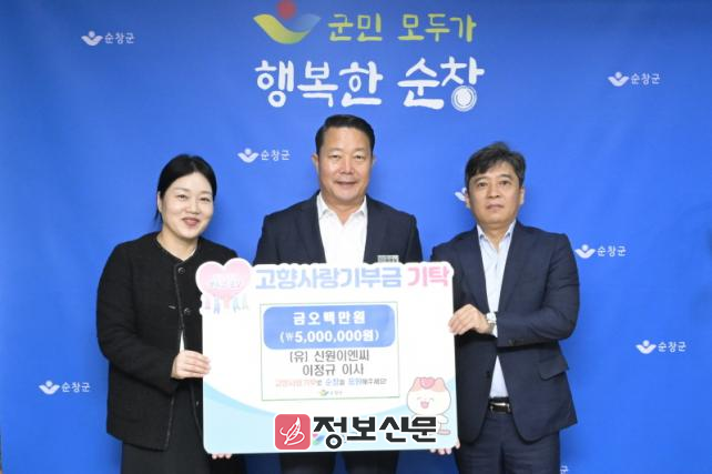 ![]() (유)신원이엔씨 이정규 이사, 순창군에 고향사랑기부금 최고액 500만원 기탁 |