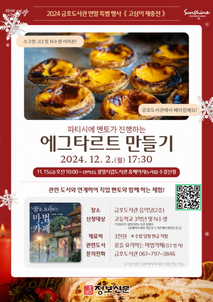![]() 광양금호도서관, 2024 연말 특별행사 「고삼이 재충전」 눈길 |