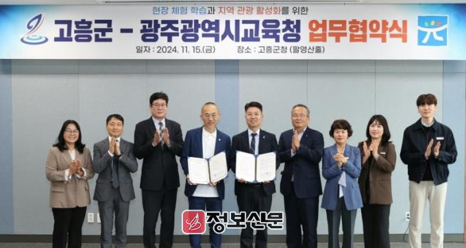 광주시교육청과 고흥군은 지난 15일 고흥군청에서 광주시교육청 최승복 부교육감, 고흥군 조대정 부군수, 광주학생해양수련원 김필모 원장 등이 참석한 가운데 ‘광주 학생 현장체험학습 및 고흥 지역 관광 활성화’를 위한 업무협약을 체결했다.