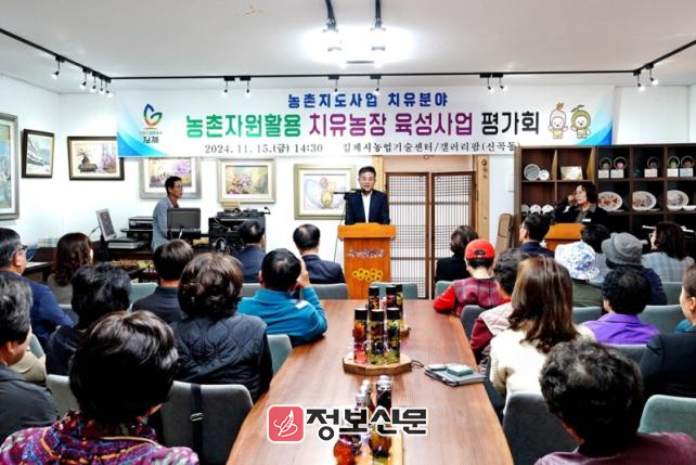 정성주 김제시장은 “농업․농촌자원을 활용한 치유서비스 농장 육성을 통하여 농촌 치유프로그램 활용한 농촌관광의 차별화를 이루어 농가소득을 증대하며 국민의 정서적 안정 도모에 기여할 것”을 당부했다.