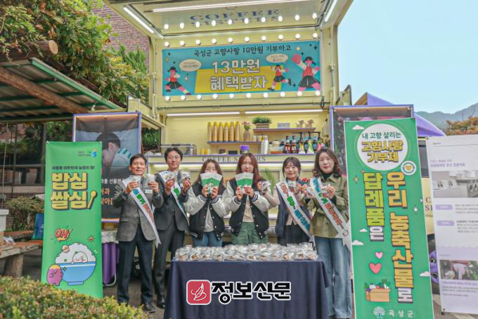 한편, 곡성군에서는 11월부터 12월 31일까지 곡성군에 10만원 이상 기부자에 대해 매달 500명을 무작위 추첨해 1만원권 기프티콘과 1만원 상당 지역쌀을 증정하는 고향사랑기부제‘또줘핑~~’이벤트를 진행하고 있다. 1만원 상당 지역쌀은 곡성쌀 홍보와 소비확대를 위해 곡성 관내 지역농협에서 지원한다.