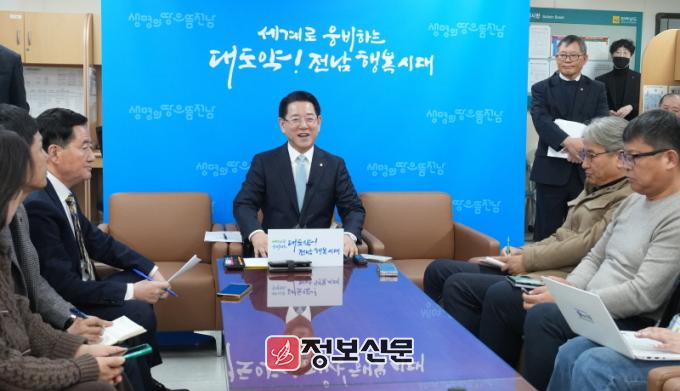 김영록 지사는 이날 도청 지방기자실에서 기자간담회를 열고 간담회에서 “통합 합의에 이르기까지 많은 분들이 우려하고 뜻하지 않은 갈등도 있었지만, 도민의 성원과 간절한 염원을 헤아려 지난 15일 양 대학이 통합에 합의했다”며 “대단히 어려운 결정이었지만 통 큰 결단을 내린 양 대학 총장을 비롯한 관계자와 한결같은 응원을 보내준 도민께 깊이 감사드린다”고 말했다.