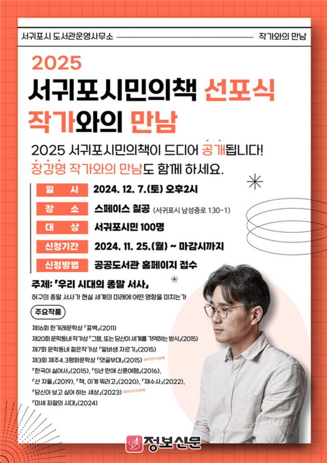 ![]() 서귀포시, 2025 서귀포시민의책 선포식 & 작가와의 만남 개최 |