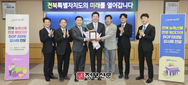 ![]() 전북특별자치도, 도내 농특산물 판로 확대에 기여한 ㈜BGF리테일 감사패 전달 |