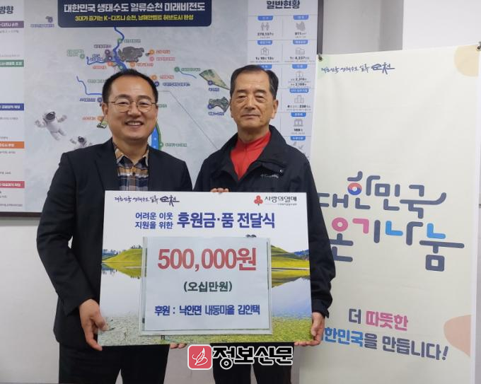 ![]() 순천 낙안면 내동마을 김인택 씨, 이웃돕기 후원금 전달 |