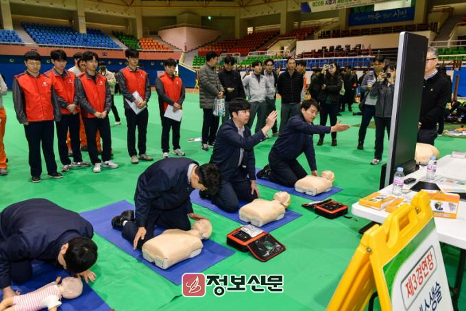 정기명 시장은 이날 대회사를 통해 “이번 경연대회는 우리 여수가 안전한 사회로 나아가는 뜻깊은 행사”라며 “자신뿐만 아니라 주변 동료의 소중한 생명까지 구할 수 있다는 사명감으로 대회에 임해주시길 바란다”고 말했다.