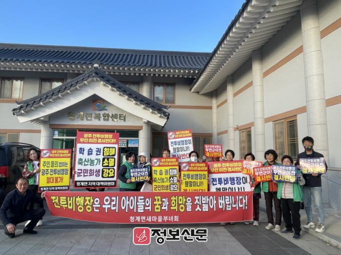 박란임 새마을부녀회장은 “광주 전투비행장은 소음피해가 크며 지역 상권을 쇠퇴시킬 뿐만 아니라 미래 세대의 교육환경도 악화시키는 위협요인”이라면서 “앞으로도 청계면 부녀회는 전투비행장 이전 반대 활동을 꾸준히 전개하여 우리 후손들이 살아갈 지역을 지켜 나가겠다”고 말했다.