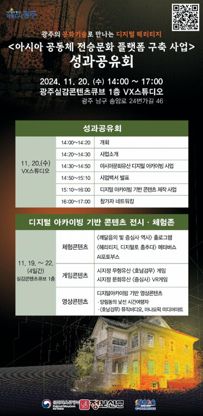 광주시가 지난 2020년부터 총사업비 50억원을 투입, ‘아시아공동체 전승문화 플랫폼 구축사업’을 추진하고 있다. 이 사업은 광주의 인공지능, 문화기술을 활용해 문화유산을 디지털 자료 전산화하고 이를 콘텐츠산업으로 확산시키는 광주형 문화유산 보존‧활용 모델을 목표로 하고 있다.