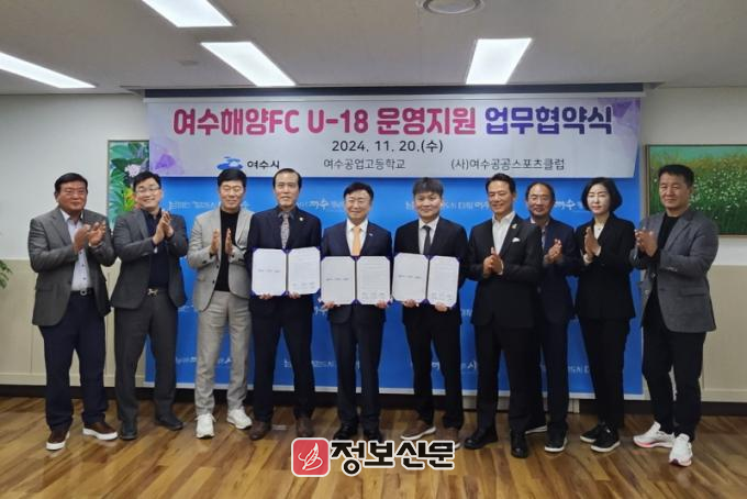 협약에 따라 여수공고는 여수해양FC U-18팀 선수들을 적극 수용해 학업과 훈련을 병행할 수 있는 환경을 조성하며, 여수공공스포츠클럽은 학교 밖 선수단 생활지도와 운영관리 등을 맡게 된다.