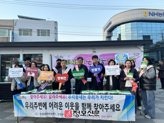 이날 캠페인에는 보성읍 복지 이장과 직원 등 20여 명이 참여하여 어려운 이웃 발견 시 언제든지 보성읍 행정복지센터로 신고할 것을 홍보·안내했다.