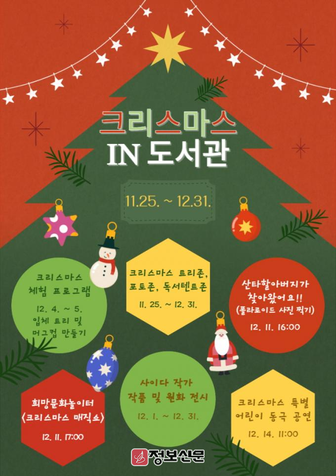 광양시는 11월 25일부터 12월 31일까지 광양희망도서관에서 ‘크리스마스 in 도서관’을 운영한다고 22일 밝혔다.