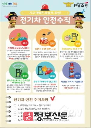 현재 소방서는 ▲충전 전 커넥터 손상 여부 확인 ▲완충 금지(80% 권장) ▲젖은 손으로 이용 금지 심한 낙뢰 상황에서 사용 금지 ▲충전 중 차량 동작 금지 ▲충전 중 작업 금지 등 내용의 안전수칙을 안내하고 있다.