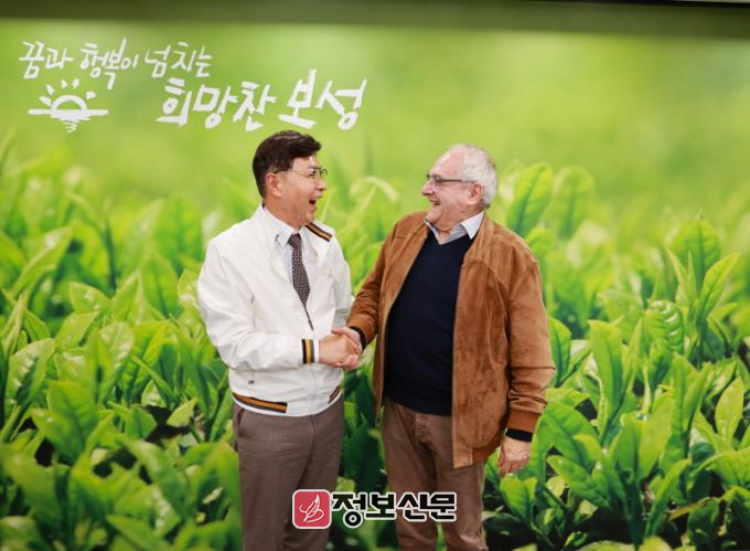 사진설명: (좌)김철우 군수와(우)프랑스 ‘필립 저글러’ AVPA 회장이 만나 해외 차(茶) 관련 기업이나 티(Tea) 마스터들이 보성 차 관련 교육 프로그램을 운영하기로 협의했다